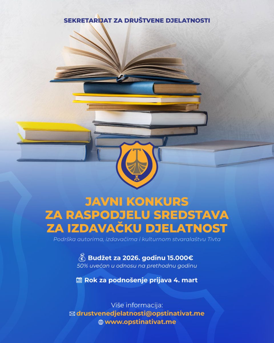 Javni konkurs za raspodjelu sredstava za izdavačku djelatnost za 2026. godinu